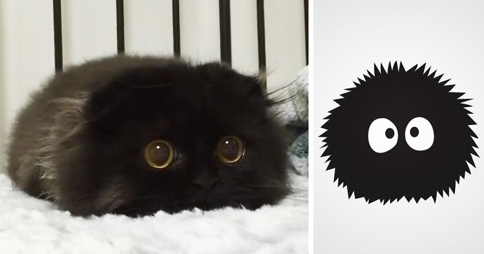 We all know and adore the tiny dust bunnies from Studio Ghibli's animated world, where strange creatures and phantoms draw our eye. Well, this raven-haired feline looks like a black soot that's come alive! With a tuft of fluffy black fur and two huge dark eyes to his name, it's no wonder that this cute cat is being compared to the notorious soot sprite all over the internet. The Scottish fold named Gimo is mesmerizing people with his hypnotic gaze that you simply cannot resist! Check out these photos and see if you can handle that much cuteness in one place. Don't forget to vote for the best!