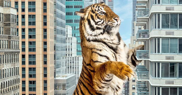 Through their Instagram page, they offer a visually captivating world where animals have evolved to grandiose sizes, casually traversing the heart of the biggest city centers in the world. This unique fusion of urban life and wildlife disrupts our usual understanding of size and place, and presents a funny alternative to 'What if? scenario.