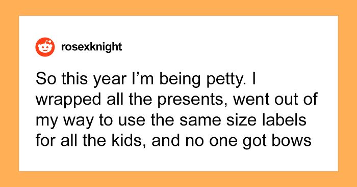 Load More Replies...Glad the kids still got presents, but wow.. what a pampered life to be living if getting the wrong 'bow' offends you.