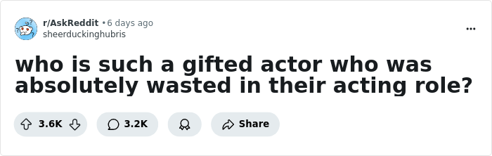 And folks had a lot of names to share—from well-known actors who didn't quite fit one role or another to thespians who might've disappeared into obscurity after one convincing but unpopular role. See people's opinions below, and don't forget to share the talented actors you'd like to see in more roles!