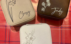 Custom Leather Jewelry Box W/Name & Birth Flower Month: Featuring her name and birth flower, perfect for storing all her blings and things.