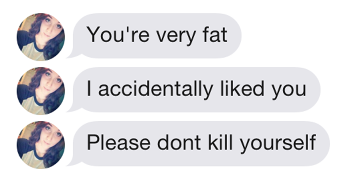 Tinder is an online dating lottery. You never know who your match really is until you’ve met them in person. They might be the funniest person you’ve ever met, but they also could be a total weirdo. This guy, however, got the third option – a complete a-hole with the lowest possible self-esteem, which boosts their ego by liking a Tinder dating profile just to vomit disgusting body shaming insults at its owner. Probably not exactly what he or anyone else would desire. Little did the fat shaming brat know, however, that this dude had the calmest of nerves and wouldn’t lose it to some rude people’s delight. Although not all of the hope is lost as after posting this terrible conversation online, the little missus got all the savage comebacks that she deserves. Scroll down to check out the whole story and the best comebacks that followed it, but before you decide never to use it (again), check out these Funny Tinder Profiles that prove it’s not entirely devoid of decent human beings.