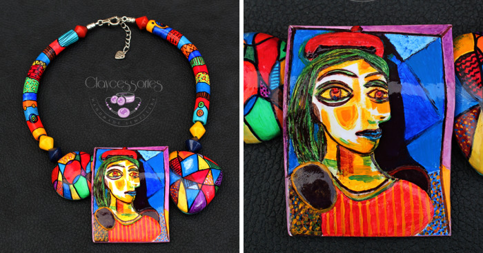 Girl with the Red Beret necklace,featuring the art of artist Pablo Picasso,handmade by polymer clay