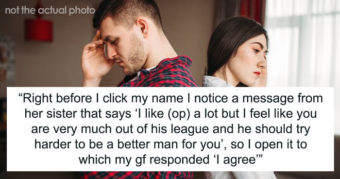 Among the messages, a conversation between his girlfriend and her sister caught his eye. The sister had written that she liked the OP but felt he was “out of her league” and that he needed to “try harder.”