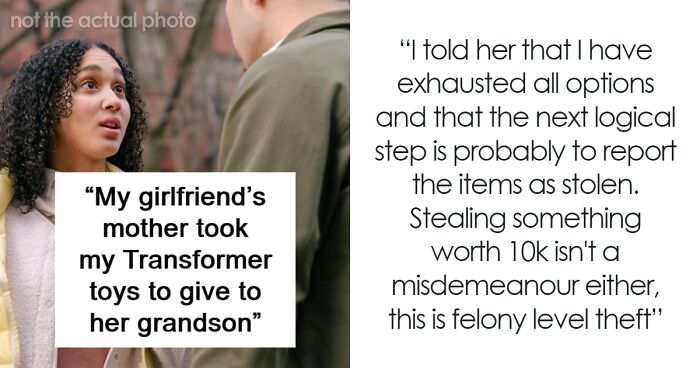 This redditor, for instance, had a collection of Transformer toys, some dating as far back as the 1980s. That was until his girlfriend’s mother took it without asking and gave it away to her grandson. Needless to say, the owner of the toys wasn’t too happy about it, but his girlfriend said she would end their relationship if he reported the theft.