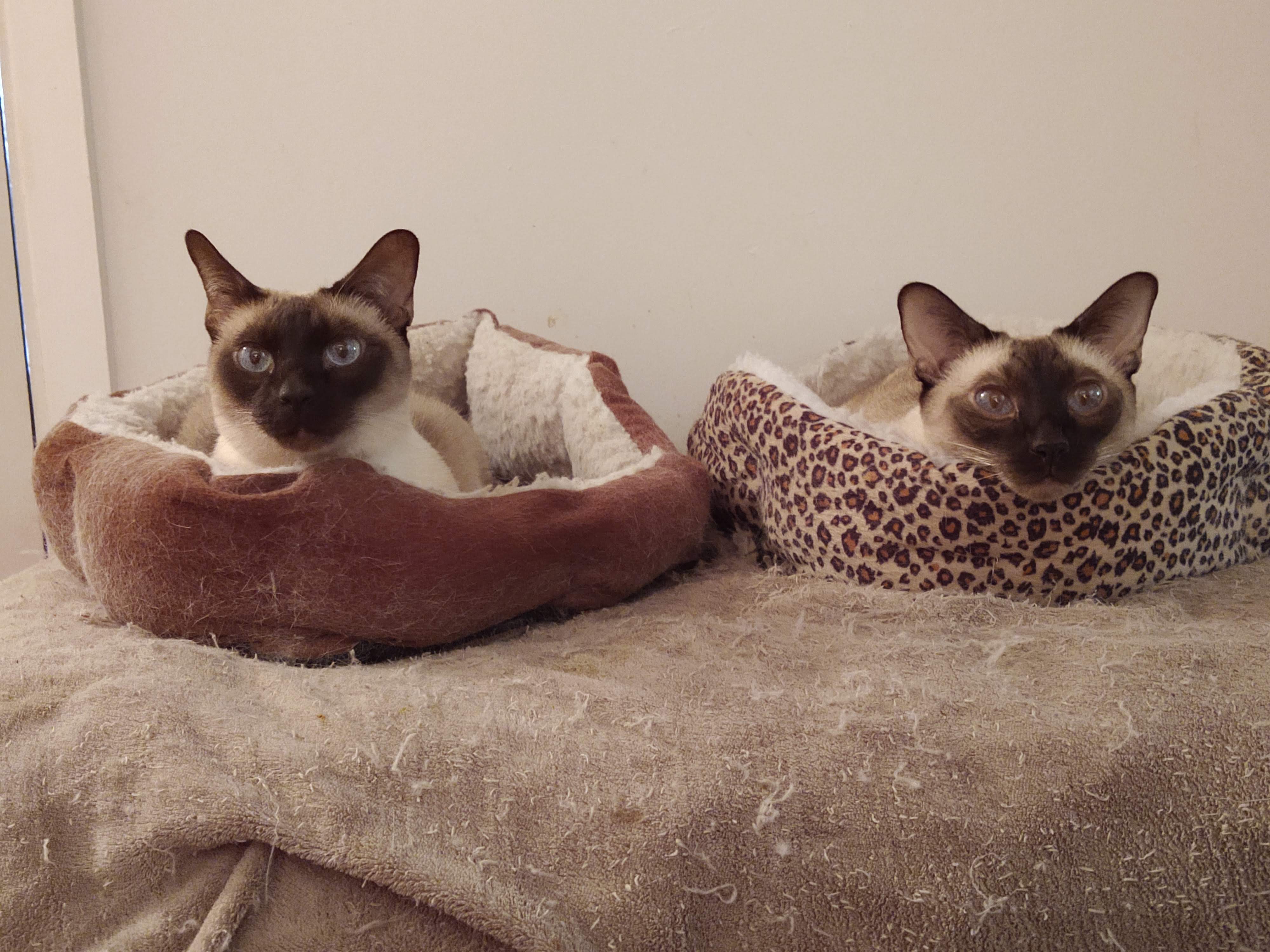 Same!! I have two brother cats. Technically, one is fatter and has orange eyes while the other is longer and has green eyes, but they're identical other. We have to keep a collar on the fatter one so people can tell them apart