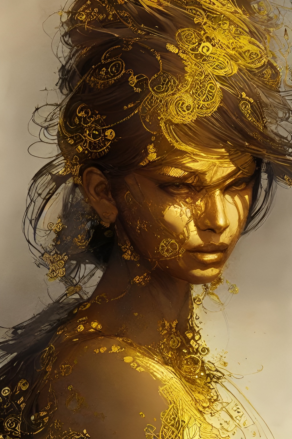Prompt: ‘various descriptive depictions of females types’ I thought of on the spot + “with gold aesthetic.