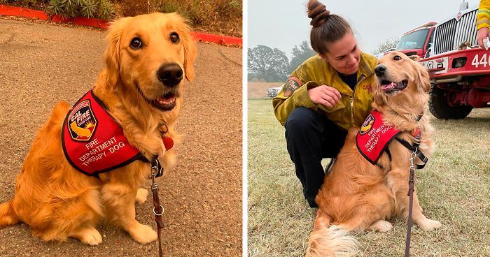 Kerith The Golden Retriever Is Visiting Areas Affected By Fires In California To Comfort Overworked Firefighters