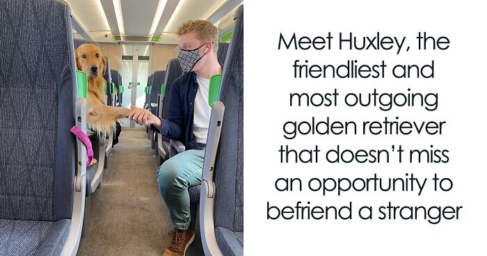 Huxley is the most charming golden retriever dog that can befriend any stranger in his path. In a video that went viral, it’s shown how Huxley introduces himself to different people on a train ride, and people absolutely adore it. Ursula wrote that Huxley also feels who needs his attention and love the most, thus goes and sits next to them.