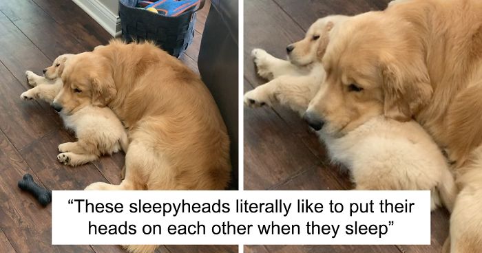 In the future, these golden retrievers would most likely be a textbook example of sleepyheads because they literally like to put their heads on each other when they’re sleeping. But, as the saying goes, let sleeping dogs lie. But it doesn’t hurt to take pictures and film them as they do.