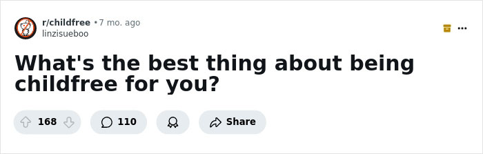 It’s a trade-off. I’m not merely child-free, but SO-free.