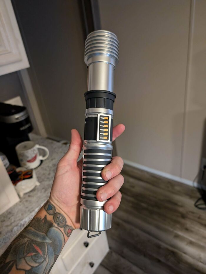 I was joking with one of my bosses that when he went to Disney that he should bring me back a lightsaber. He jokingly told me one of the owners is a huge Star Wars guy himself and goes several times a year himself. I started joking with him that he should get me one next time he goes. Turns out he came back yesterday and he gifted me this bad boy today. I offered to throw him money for it but he insisted that I just have it for free. Definitely extremely grateful to my boss for this!