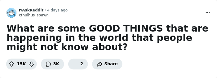 Honestly, the fact that this question even exists and has thousands of engaged responses gives me hope. We're literally craving good news because we're so overwhelmed by the negative stuff.