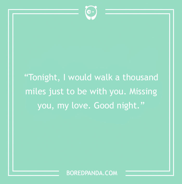 “Tonight, I would walk a thousand miles just to be with you. Missing you, my love. Good night.”