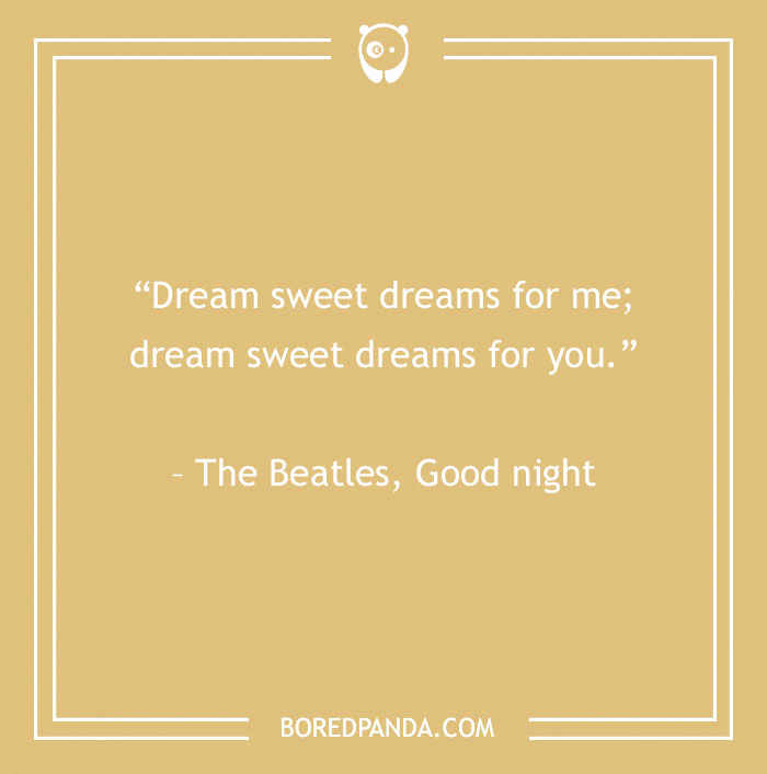 “Good night. Sleep gently tonight and dream of the happiness which is sure to come to you.”