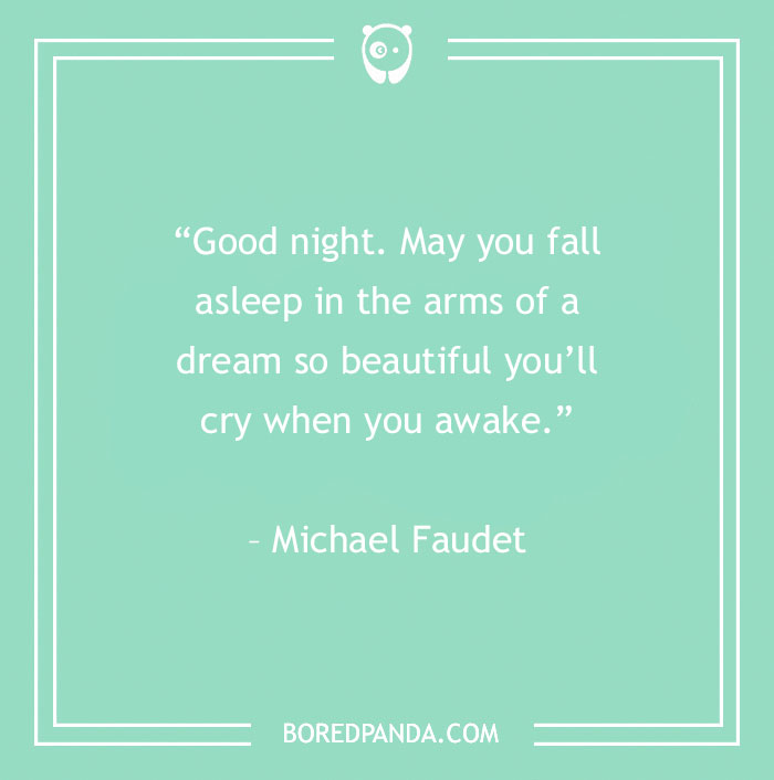 “Good night. May you fall asleep in the arms of a dream so beautiful you’ll cry when you awake.” – Michael Faudet