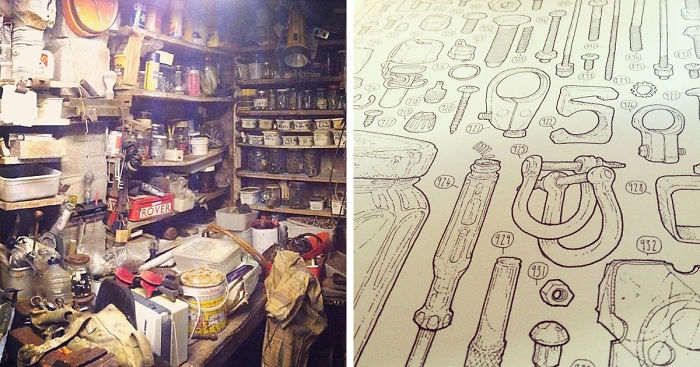 Artist Celebrates Late Grandfather By Drawing Each Of The 100,000+ Items He Left In His Toolshed