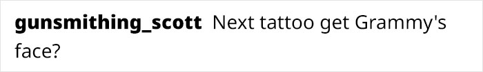 He then asked his grandma to come over. He lifted up the sleeve of his shirt to show off two new black and white American traditional tattoos—nice choice, by the way—but Nanny didn’t seem to be a fan; maybe she prefers the traditional colorscape of American traditional tattoos.