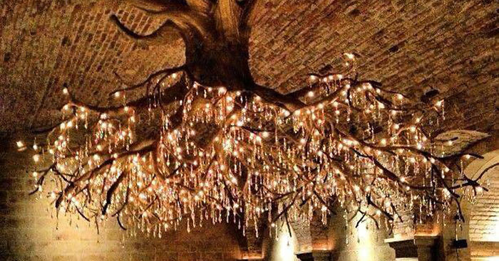 This elegant chandelier, designed to look like a massive grapevine laden with 1,500 Swarovski crystal ‘grapes,’ was crafted by Donald Lipski and Jonquil LeMaster. This sculptor-artist duo created the chandelier for the Kathryn Hall vineyard, a wine producer in Rutherford, California.