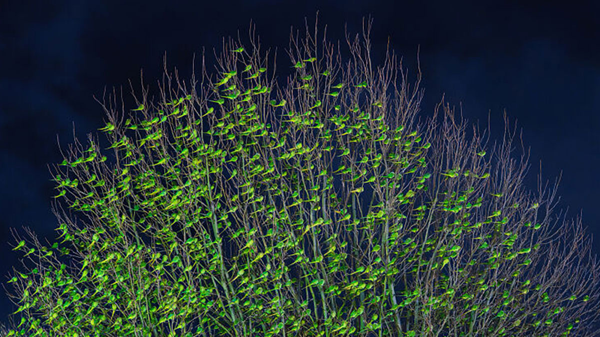 But I had never witnessed what I saw recently: hundreds of birds perched and sleeping in the trees around a car park. There were so many that the tree itself seemed to grow green leaves overnight.