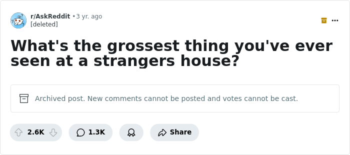 A few years ago, a thread appeared on AskReddit, the author of which asked netizens a question: "What's the grossest thing you've ever seen at a stranger's house?” Today the thread is no longer collecting new comments, but there are already quite a lot of them: 1.3K with twice more upvotes. So today we, Bored Panda, offer you a selection of the most popular stories from this thread.