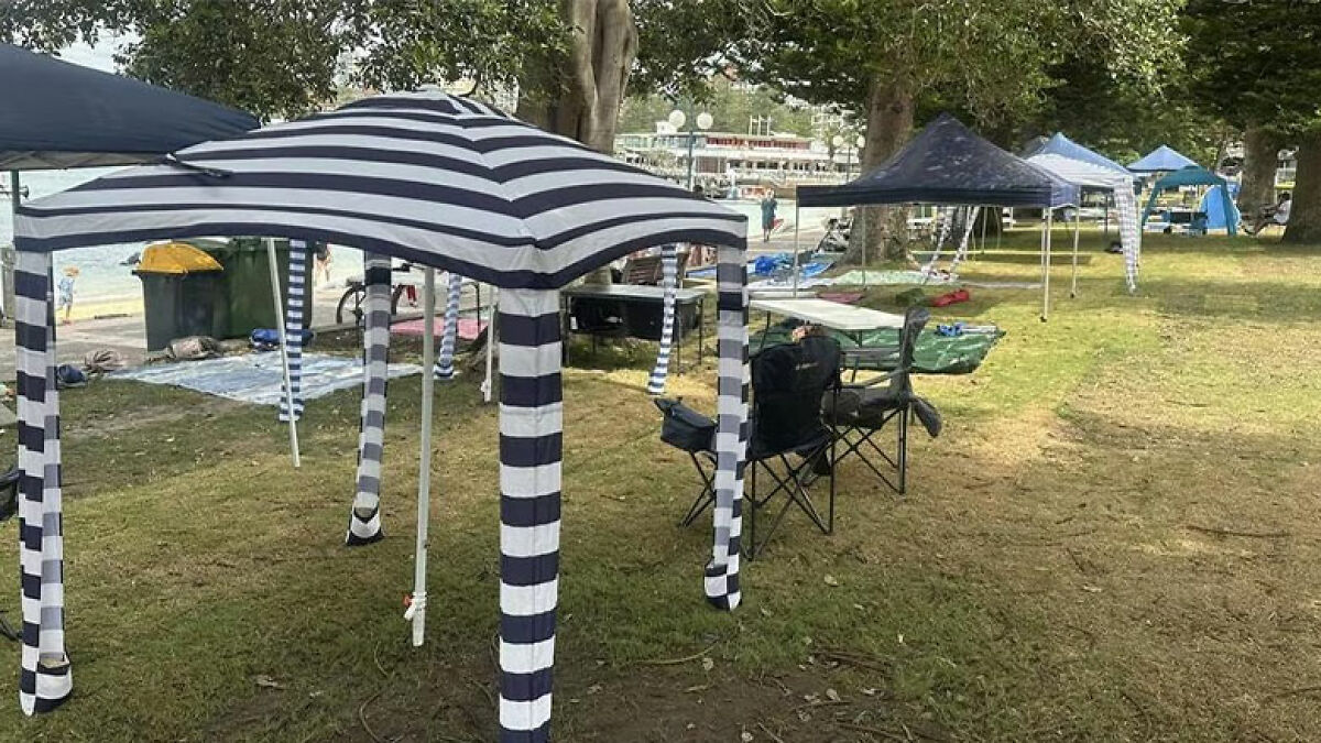 Controversy erupted when some revellers attempted to reserve the best spots at Manly Beach by setting up gazebos