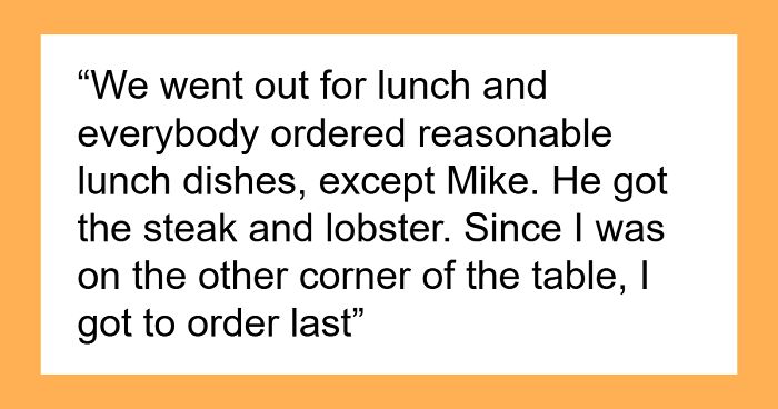 Mike is a friend-of-a-friend who’s joined them twice before, and both times, he’s pulled the classic “split the bill evenly” move despite ordering way more than everyone else. The first two times it happened, OP let it slide. But the third time, Mike went full surf and turf while the others ordered modest meals. So, OP hatched a plan.