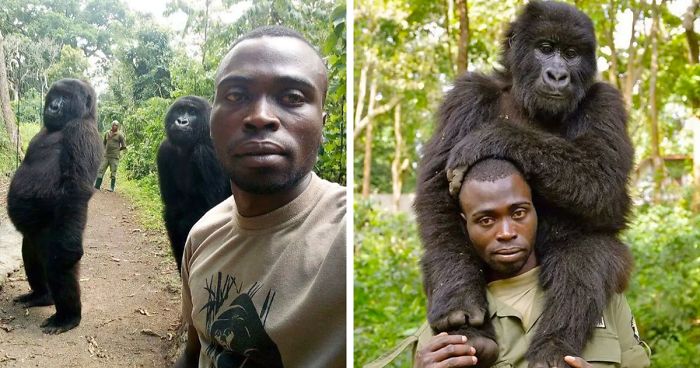 Last year, images of another ranger spending time with an orphan gorilla went viral