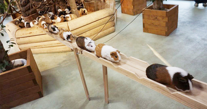 The Nagasaki Bio Park zoo in Japan has an ingenious and incredibly cut way of moving large amounts of guinea pigs between enclosures.
