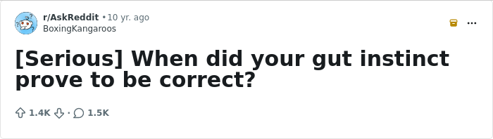 Bored Panda has rounded up an extensive list of stories from across the web. Some are scarier than others but all are a reminder that our gut instinct isn't there for nothing, and often, it pays to listen to it. We also explore how and why our intuition works the way it does. You'll find that info between the images.