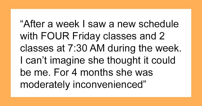 Case in point, u/sdarnold2017heisman amused the r/pettyrevenge online community with a tale about how he got back at his cheating ex by messing with her college class schedule. Scroll down for the story in full, as well as to see how the internet reacted. Bored Panda has reached out to the author via Reddit, and we’ll update the article once we hear back from him.