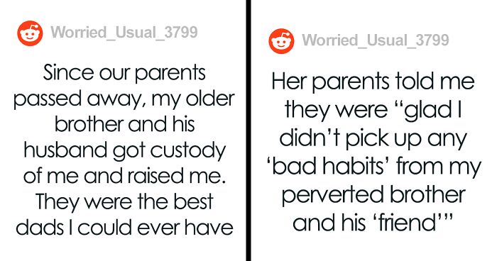 While most of you Pandas are bound to focus on how this family overcame adversity in the face of tragedy, the redditor’s girlfriend’s homophobic parents instead chose to criticize the fact that it was two men who raised the child. You’ll find the full story, as told by Worried_Usual_3799, below, with all of its dramatic ups and downs. Have a read and let us know if you think the redditor was right to react the way he did or if you think his actions were rude.