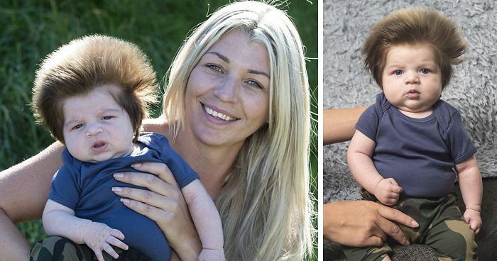 Most of us are born without much hair. And sooner or later, most of us end up pretty much like we started. But 9-week-old Junior Cox-Noon from Brighton, UK, was born with so much hair that he’ll never have to worry about going bald. If anything he’ll have to worry about all the money he’ll need to spend on haircare products and trips to the barbers!