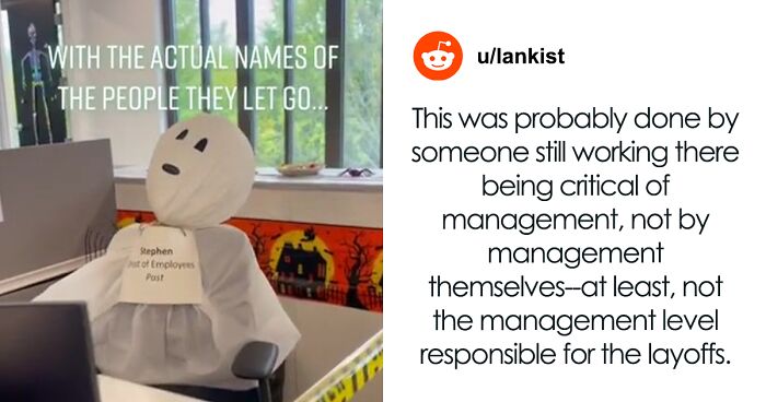 The actual names of people who were laid off were featured on the ghosts, which folks online found in poor taste, whether it was a joke or not
