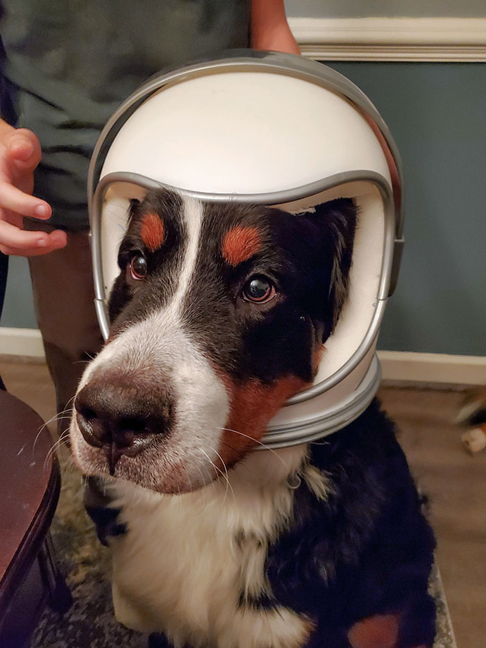 This Is Snuffles Wearing An Astronaut Head From Halloween