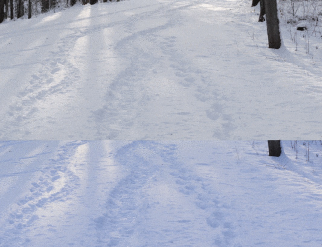 The color in *all photos* is adjusted. The only question is how. In this case it was adjusted by setting the white balance to daylight. Our brains are generally very good at compensating for stuff like this, and it wouldn't look nearly that green if you saw it in real life. Here's a photo of white snow in shade with the color balance adjusted for shade and for daylight. Most people tend not to notice the bluish cast of snow if they haven't been made aware of it. Untitled-6...3a68a5.jpg