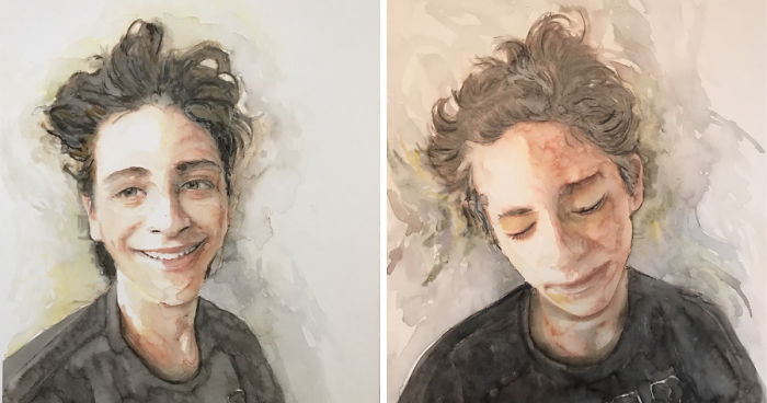 It seems that this happened rationally, but that was not the case. He is a teenager, he goes through the phase of the age’s confusion. And I feel fail like a mother. Although I know is a transition time of life, all I can do is offer my unconditional love. During this process, I have been trying to be at his side, paying attention to his feelings, and I began to notice all his expressions, I found myself in a kind of admiration look that people does when amazed. I confronted myself with several facets of him and I thought it would be lovely to honor him through the watercolors. In all my career, at that time, I only painted him once. And he hated the painting so much that he forbade me to post any picture of it. To be honest, I understand his opinion, and I decided it was time to show him how I had improved as a watercolor artist, but mainly, to portray how I see him, how beautiful he is, and how wonderful is every expression he does.