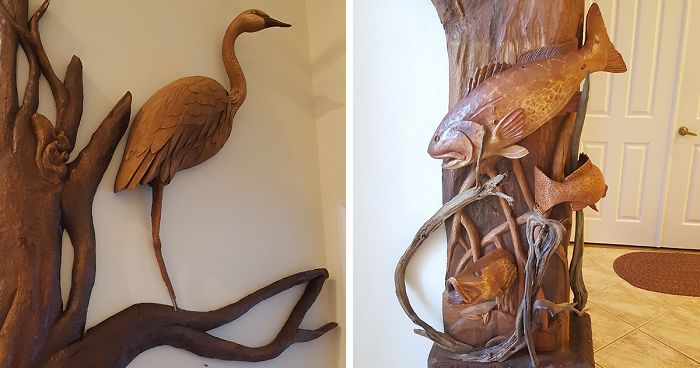 My name is Gil Watson, I’m a Florida-based artist who hand-carved this “Nature Tree” totem out of northern white pine and white cedar, depicting the wonderful nature and wildlife of this area.