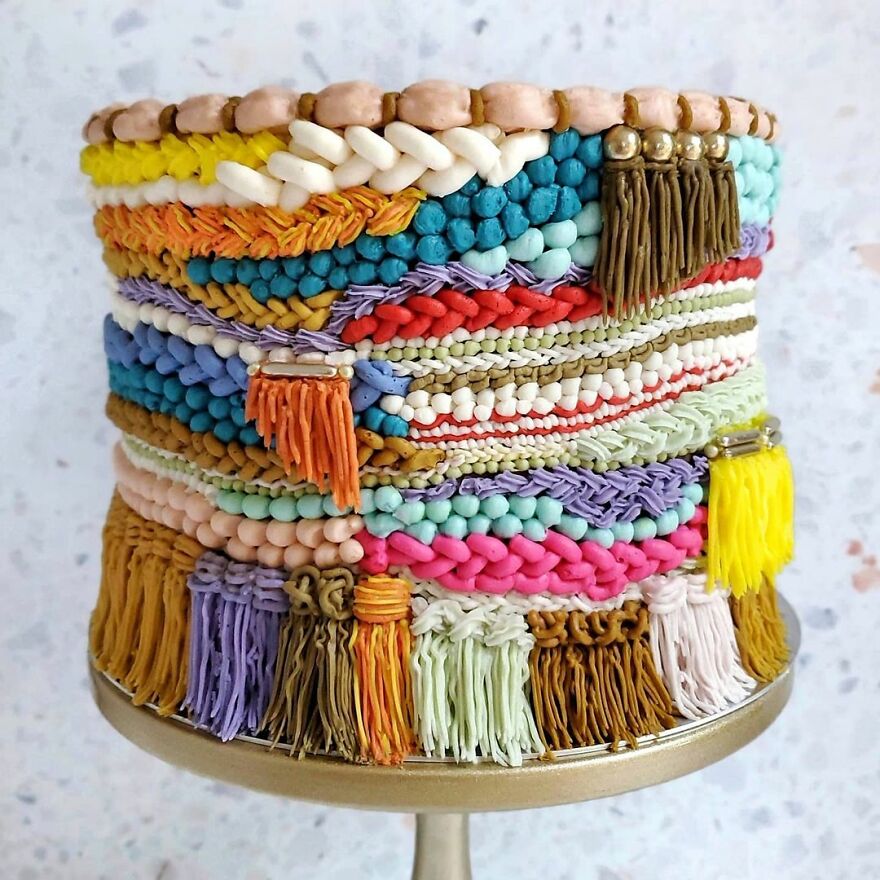 There are no limits when it comes to one’s imagination and a good example of that is Lauren Wodnicki, a confectioner from Southington, Connecticut, USA, who creates cakes that look like piles of hand-embroidered pillows or shag rugs. Her cakes are fun to look at and might have you doing a double take because the decor pieces are so realistic!