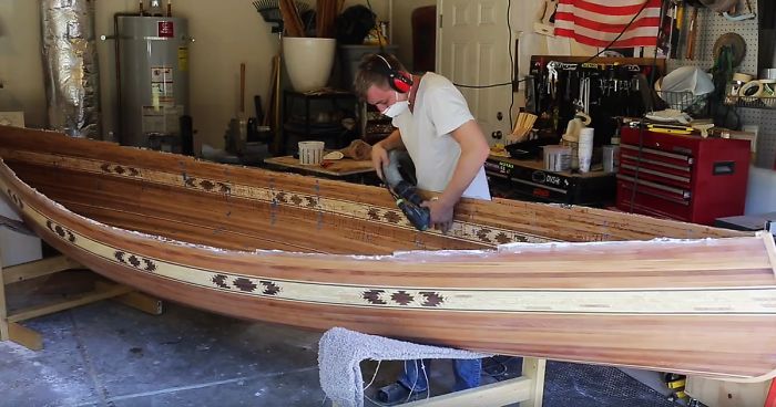 Oregon-based craftsman Adam Koekkoek, aka “A Guy Doing Stuff” has built a canoe in his own garage, and anyone would love to paddle in it. Its beautiful design makes you really appreciate the 800 hours that Adam has put into the project. “I’m not a professional boat builder,” he said. “I’m just a guy with basic woodworking knowledge who wanted to build a wooden boat.” Adam has used cedar, ash, and walnut wood to make the canoe. The total cost of materials was around $1,500, and the boat weighs around 60-70 lbs. The craftsman claims he would not have even started the project if it wasn’t for the book Canoecraft, and recommends both the read, and the cedar strip to anyone that wants to attempt building a canoe. “Cedar strip canoe is the best type of canoe available in every way <…>. It’s a super-fun long-term project, they’re by far the most beautiful type of canoe, they’re extremely lightweight, and they’re surprisingly very strong.”