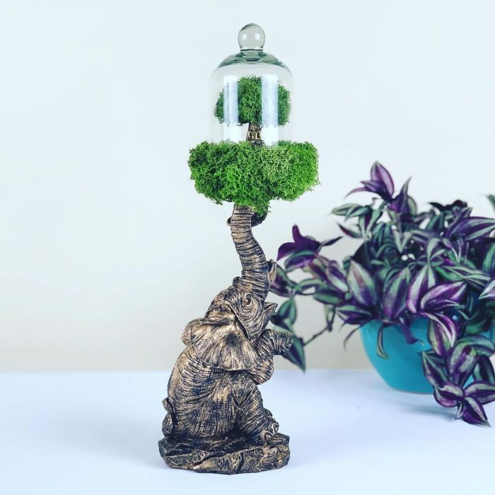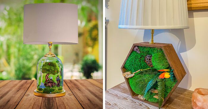 I wanted to create green, botanical art, terrariums at any scale; and it had to be stunning, unique and easy to care for. Since I was a child, I loved making terrariums. And when I wasn't crafting mini moss trees, I was either painting or decorating lamps. I have a little obsession with crafting lamps. I thought, why not combine lamps and terrariums? It brings both fantasy and home decor together. That was the start of my experiment.
