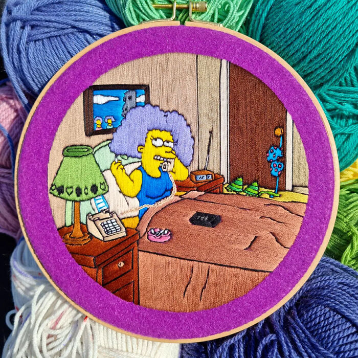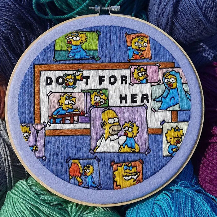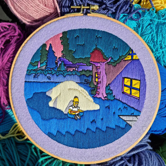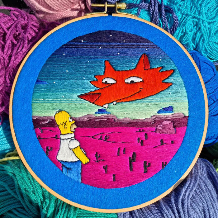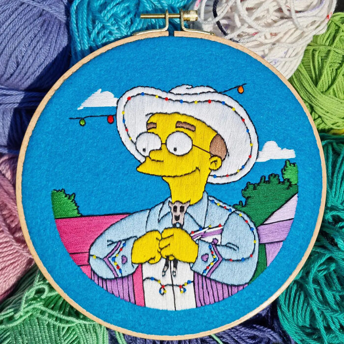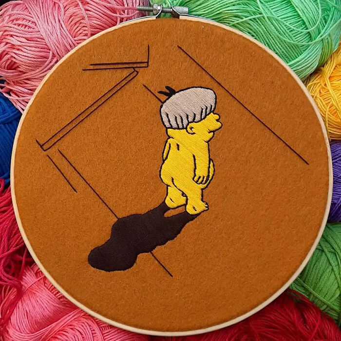 I've been making embroideries with The Simpsons ever since 2015. They're all handmade, and lately, I've been using felt, which gives them a beautiful background color that matches perfectly with the amazing color palette that The Simpsons has to offer.