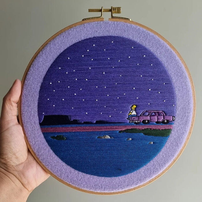 It takes me 10 to 30 hours to make each of these embroidery pieces but they're all fun to make. Whenever I make them, I remember the scenes from my favorite cartoon. You can check out more of my work on my Instagram!