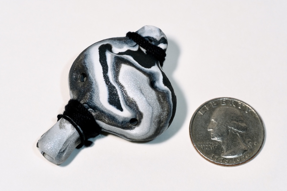 Pocket pendant ocarina. I got the name for this one from my grandfathers business Alpine Gems. One of his main products was Silvercloud Alabaster which is a gem quality gypsum that native Americans carve into awesome sculptures.