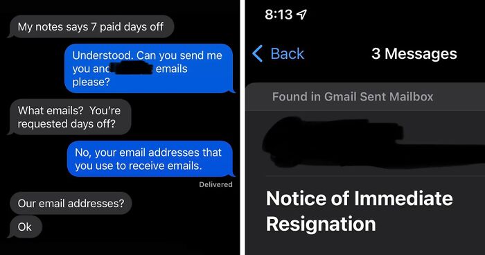 Redditor u/obdx2 is one such employee. They shared a bunch of screenshots of their message exchange with their boss on the r/antiwork subreddit. The two chatted about how much paid time off the OP had, and apparently, the boss changed their ‘handshake deal’ from two years back. The employee resigned then and there. Scroll down for the full story and to see how the internet reacted, dear Pandas.