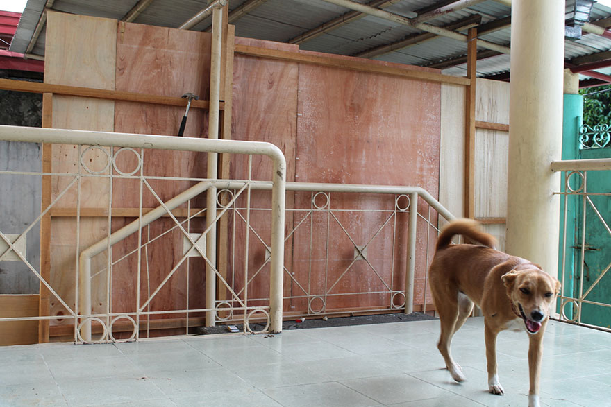 “My father asked his friends and both he and his friends turned our garage into a small pet shelter for white puppy and his family to stay for the mean time. Our small animal shelter has a wall to keep our own dogs from getting mange from white puppy and his family.”