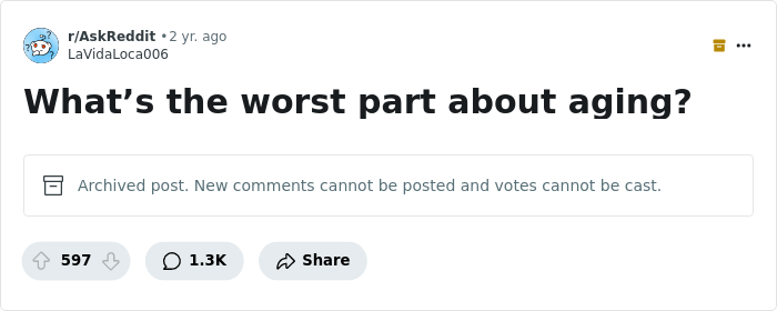 Load More Replies...Yes there are down sides to getting older but everyday I am here is a blessing. I still have time to enact change, to help, to love. I move a bit slower but I see more. I raised my children now I get to enjoy my grandchildren with out the need to be the disciplinarian. I will take the downsides and thank the good Lord I am still here.