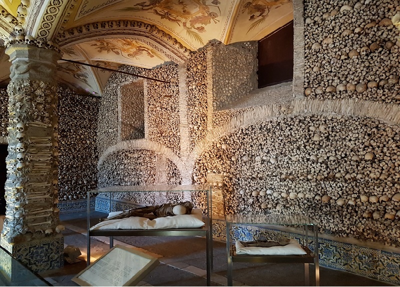 They didn't leave one there. There are rumors that anywhere between 1 and 5 remains are still human, but no confirmation. It's just a scary story to attract more visitors.