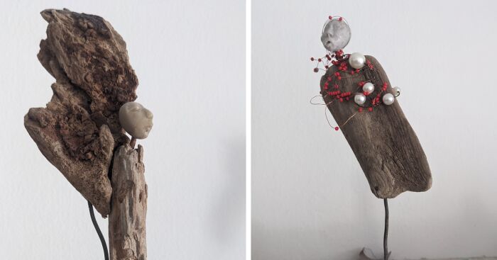 My artworks show unique creativity and a special talent for combining natural materials like driftwood and pebbles in a special way.