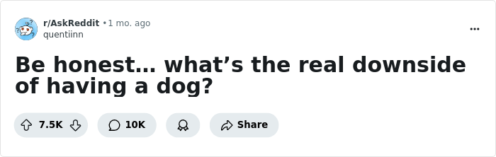 In a heartfelt discussion on AskReddit, some honest pet owners opened up about the very real downsides of having a dog. The lack of spontaneity in your life is just the tip of the iceberg. Scroll down to see the world through their eyes.